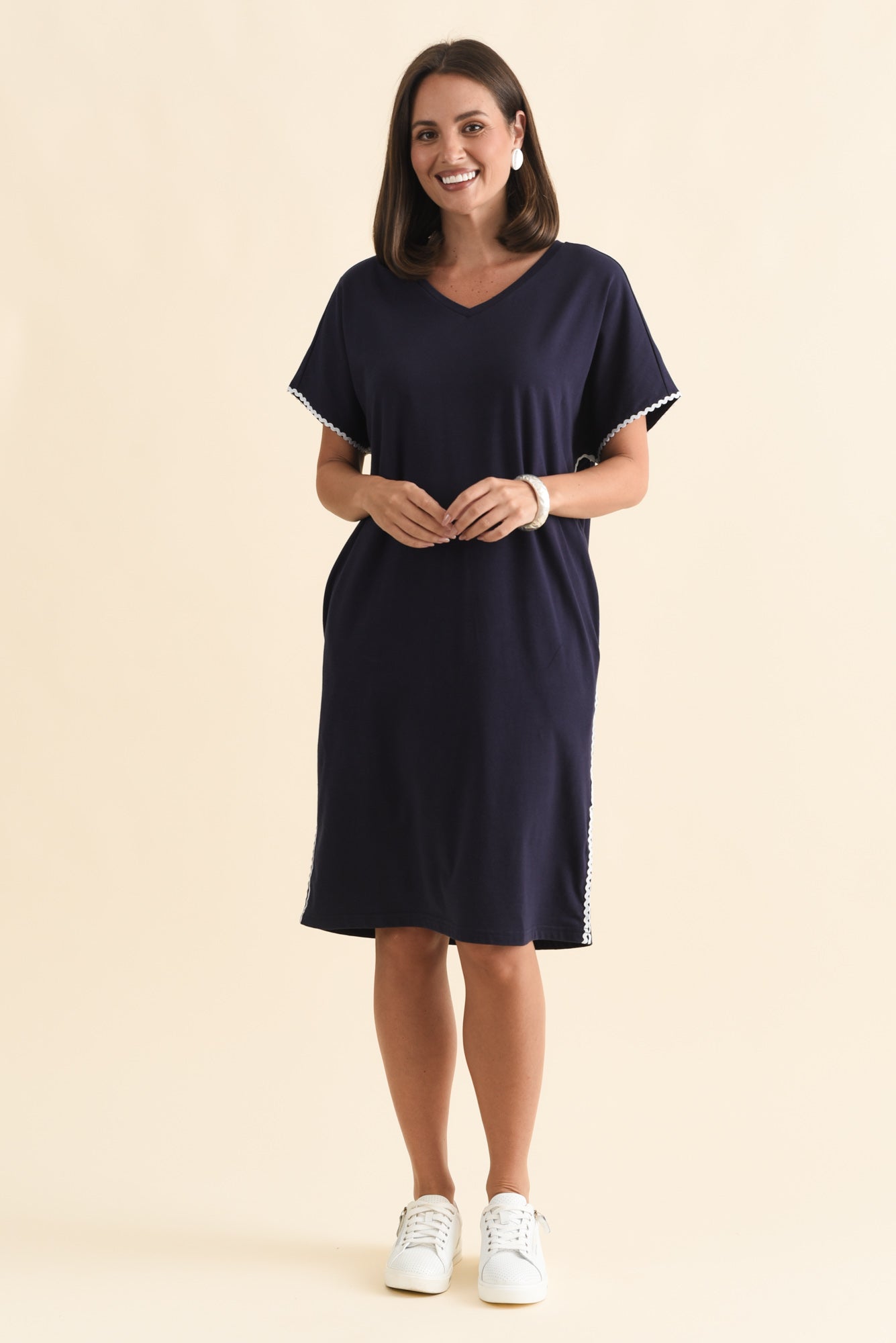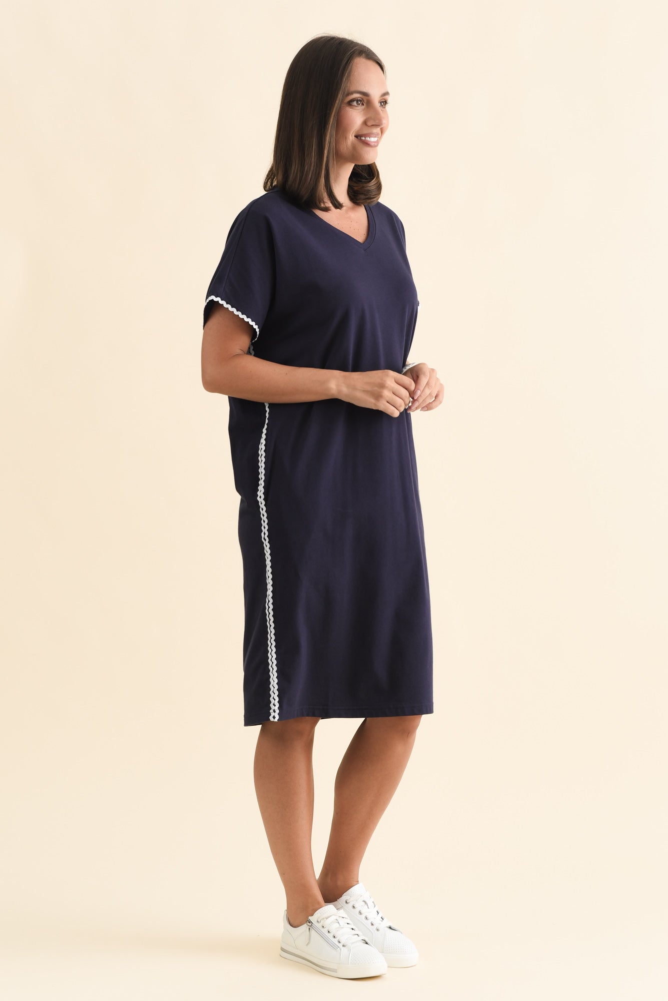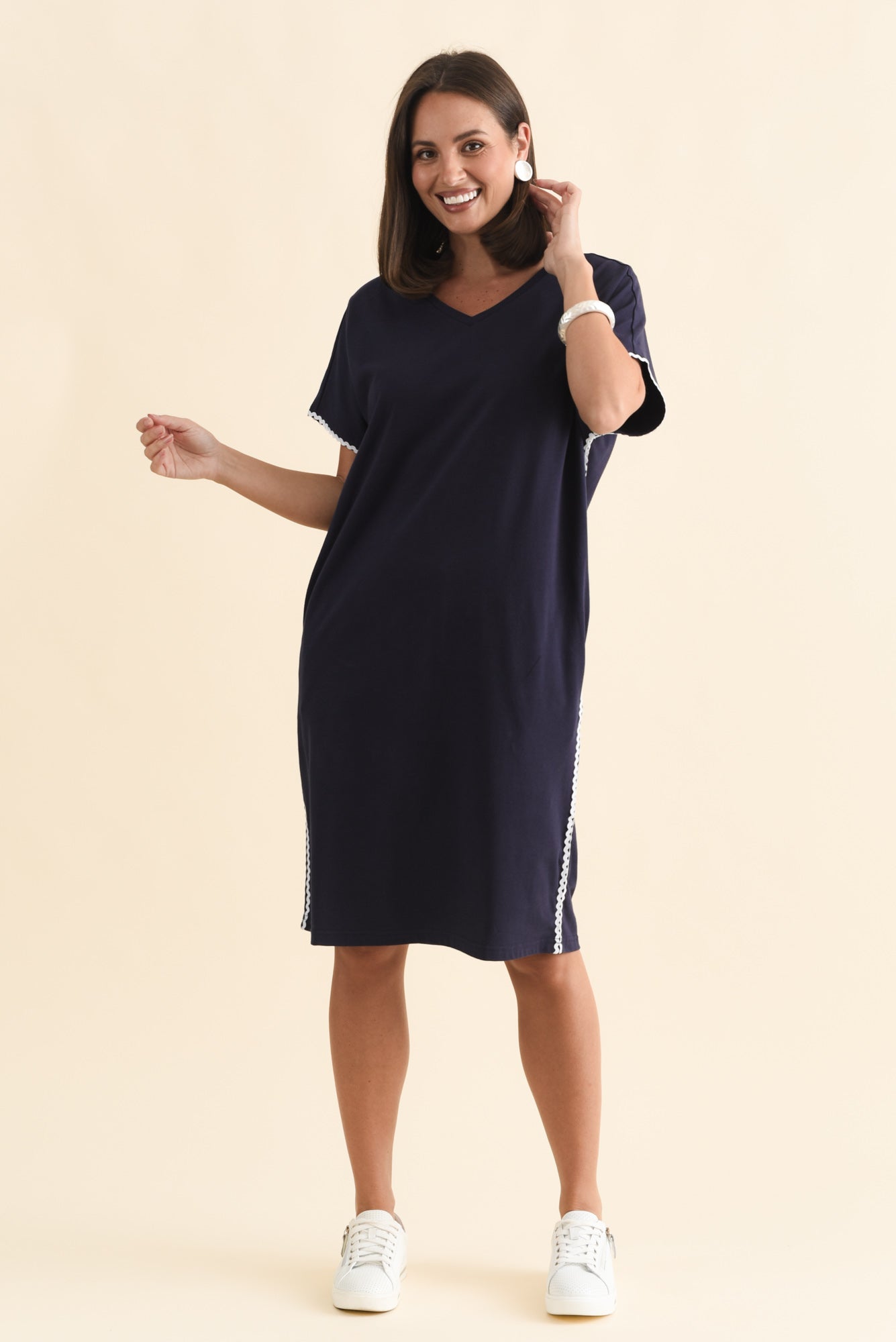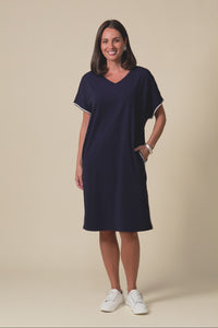 STELLAR NAVY CONTRAST COTTON TEE DRESS