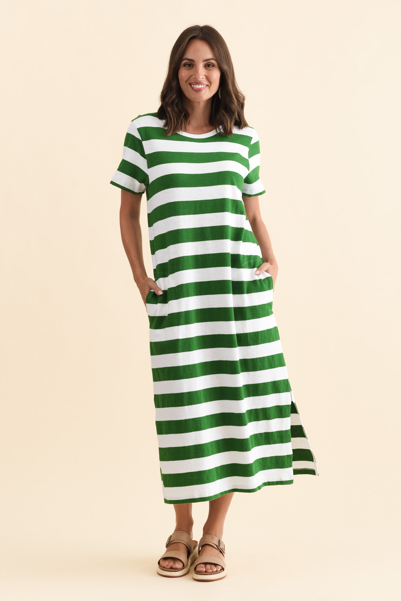 TALLOW GREEN STRIPE POCKET DRESS