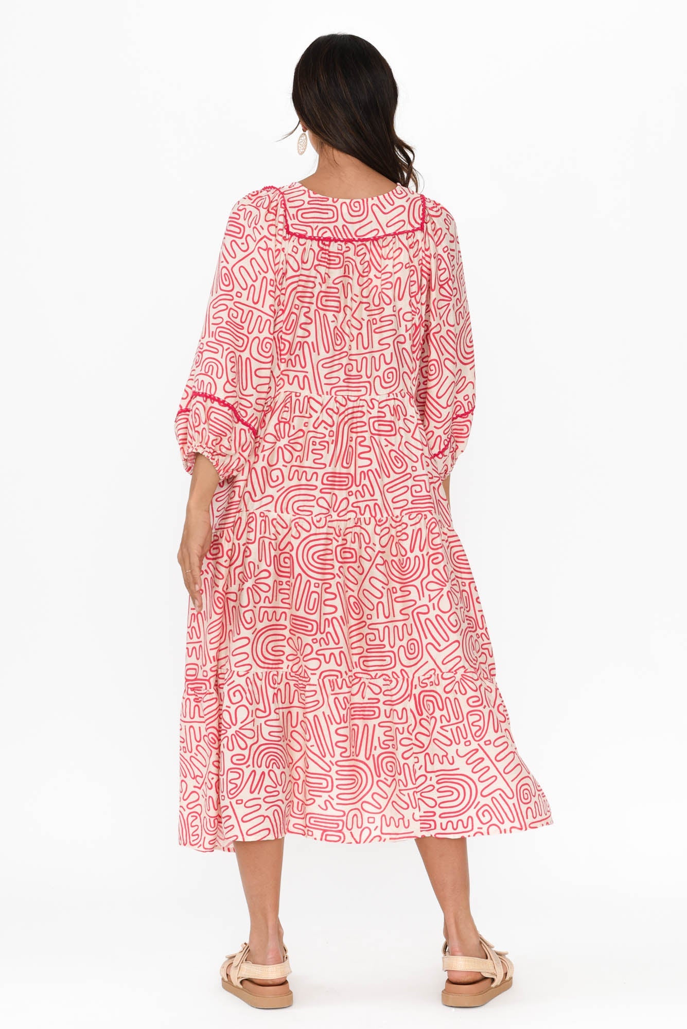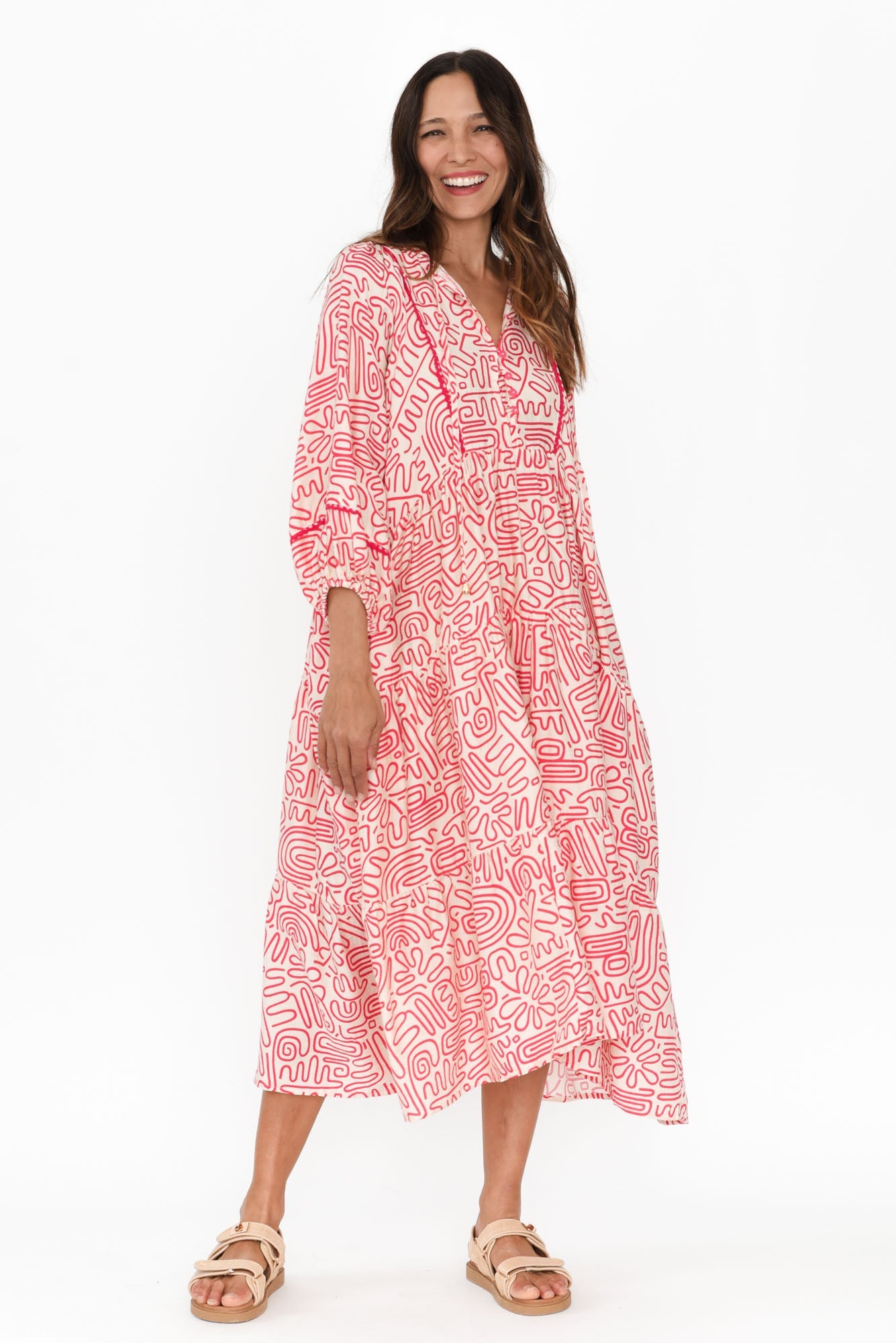 TANAIA RED ABSTRACT SLEEVED DRESS