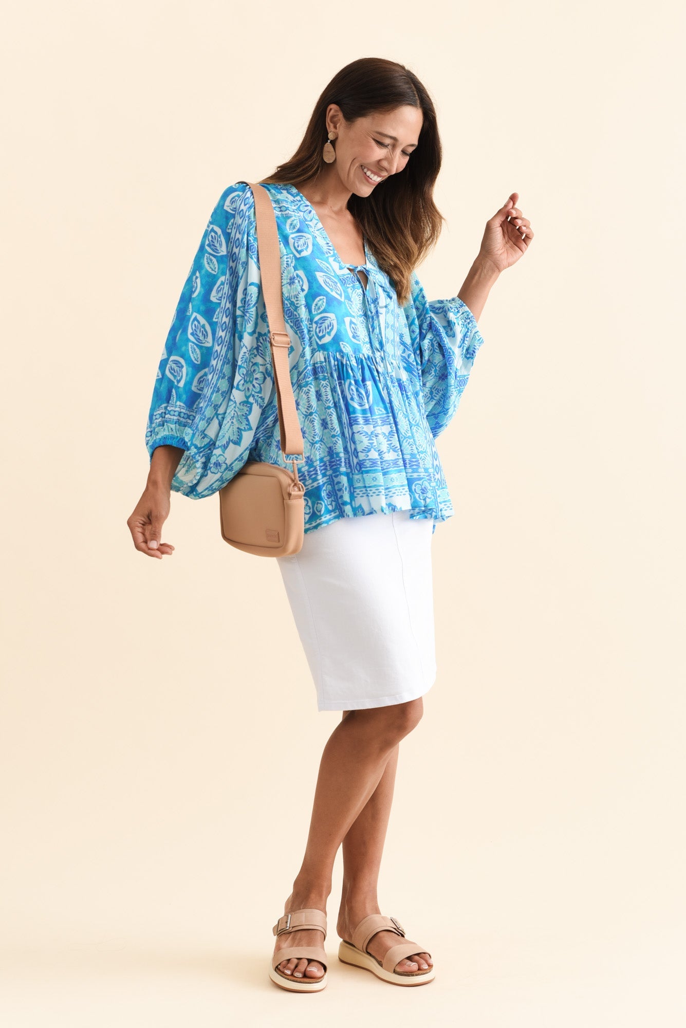 TAYLER BLUE MOSAIC PUFF SLEEVE TOP