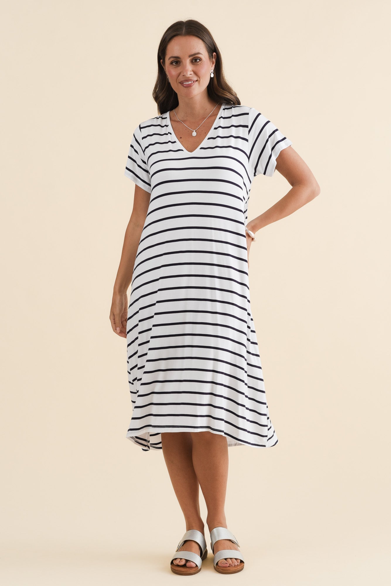 Tiffany White Stripe Bamboo Tee Dress