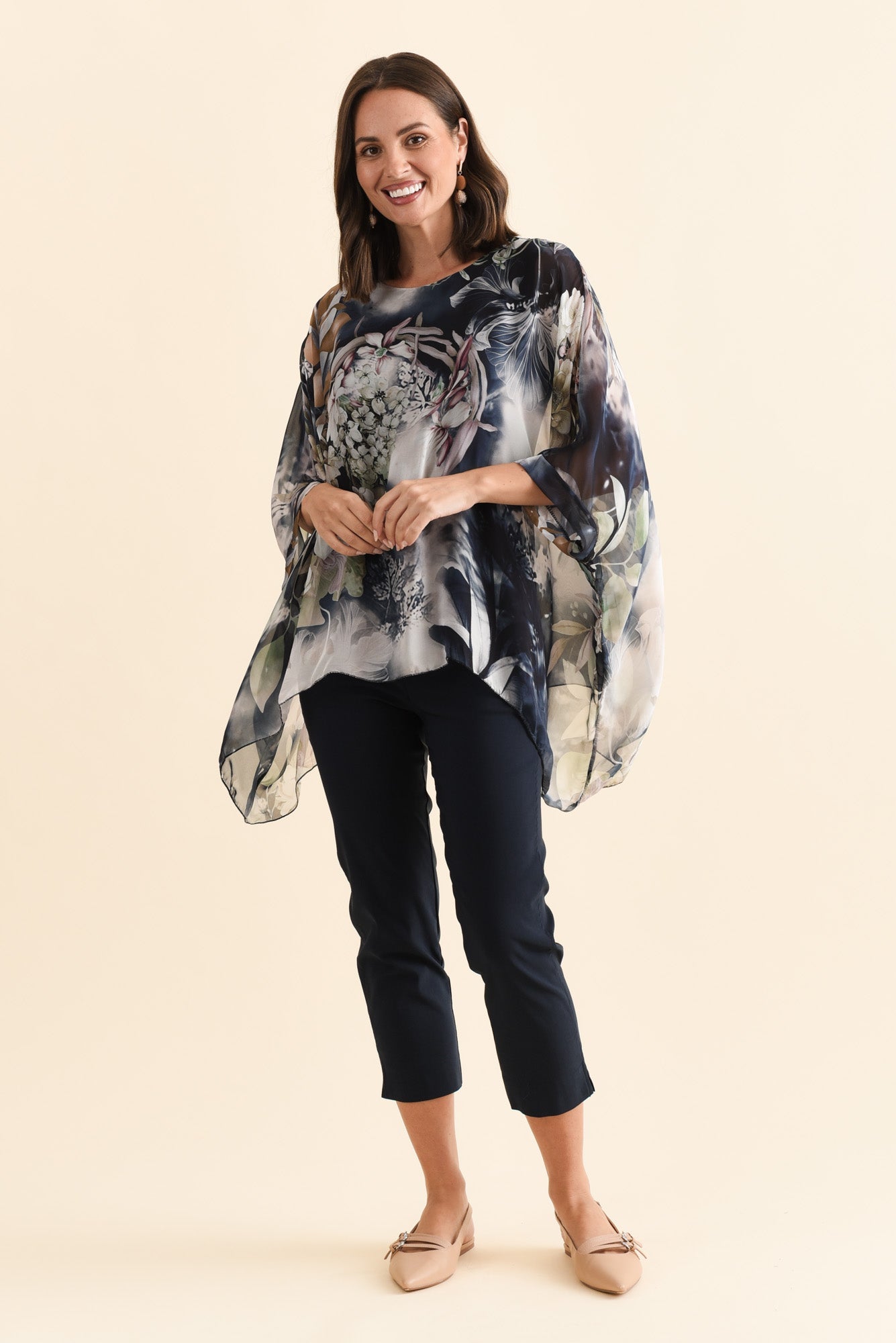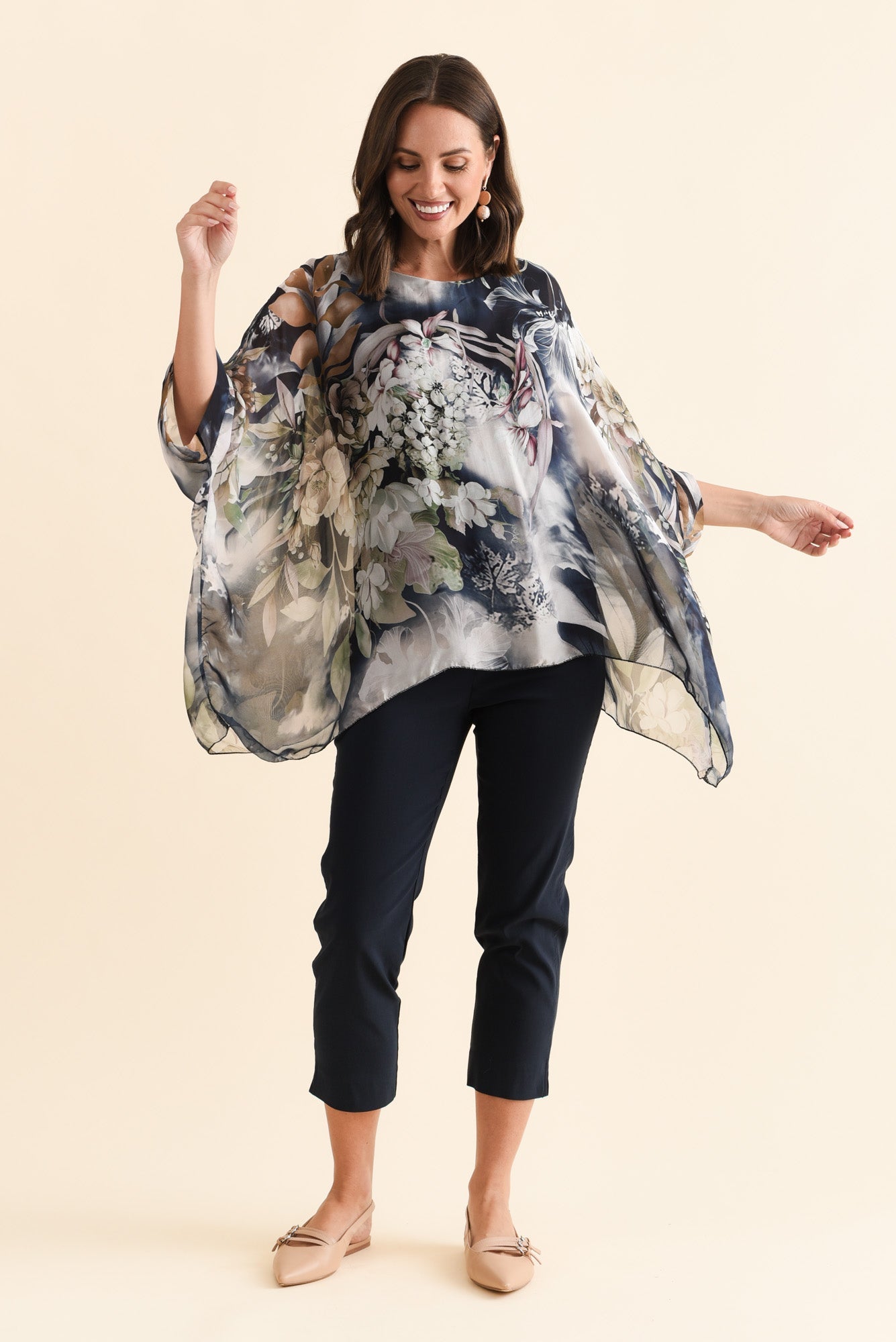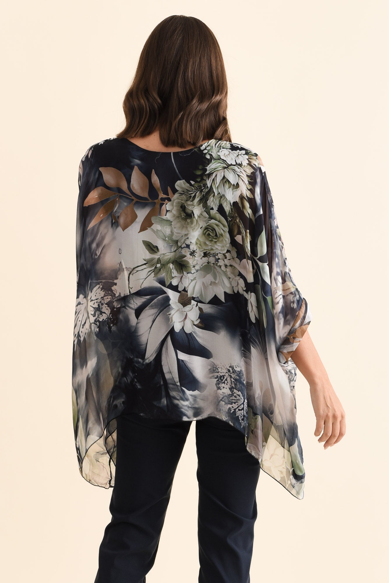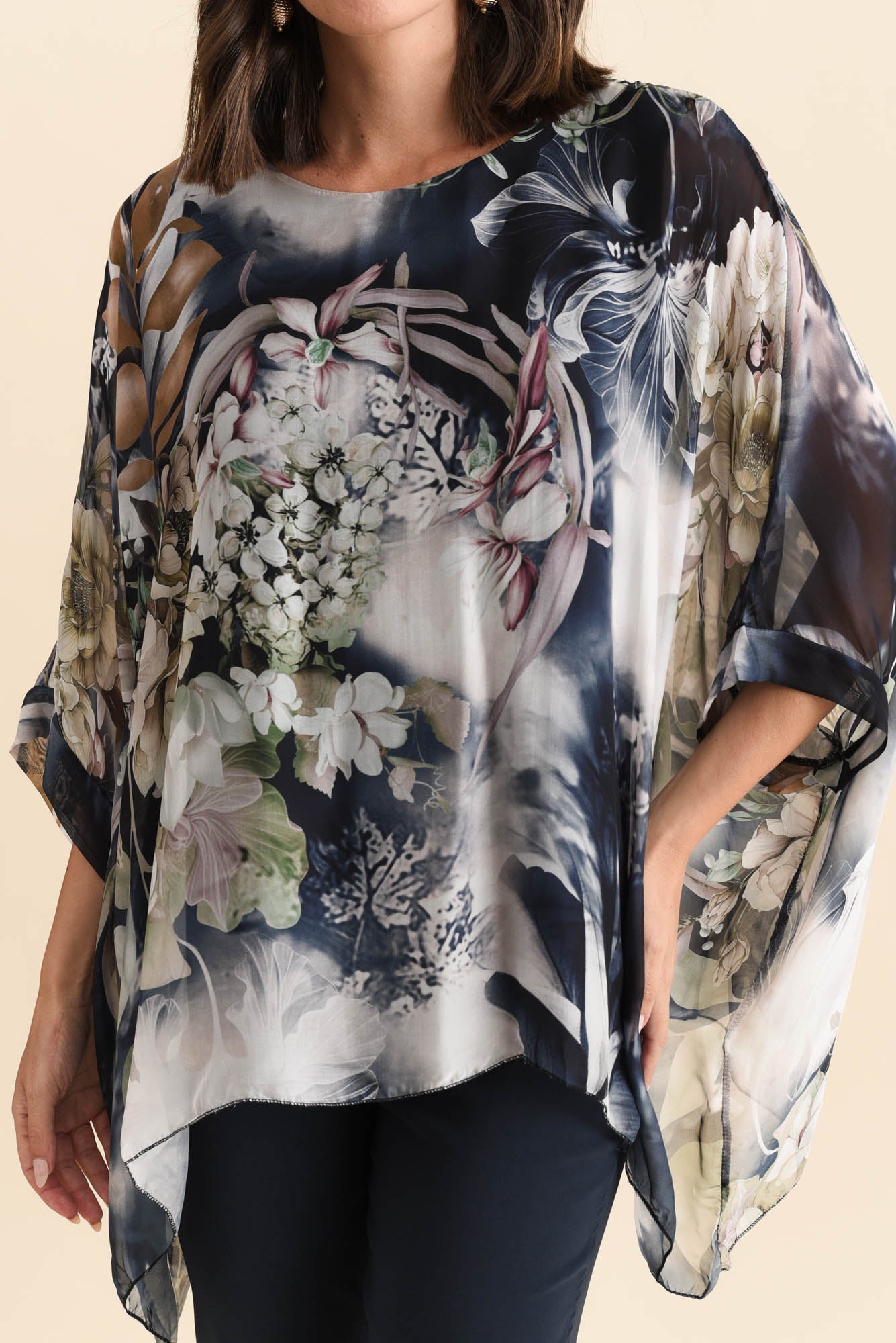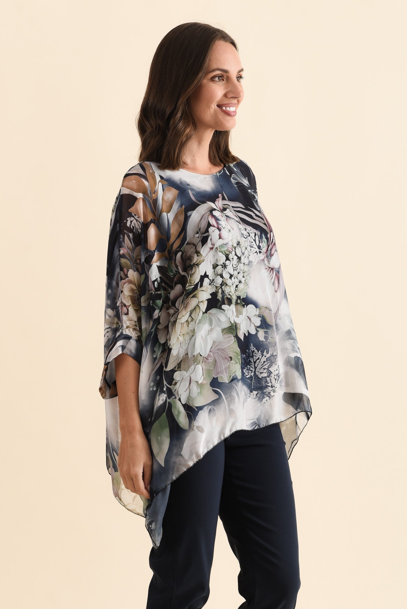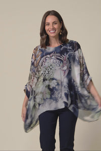 TREVINO NAVY ROSE SILK OVERLAY TOP