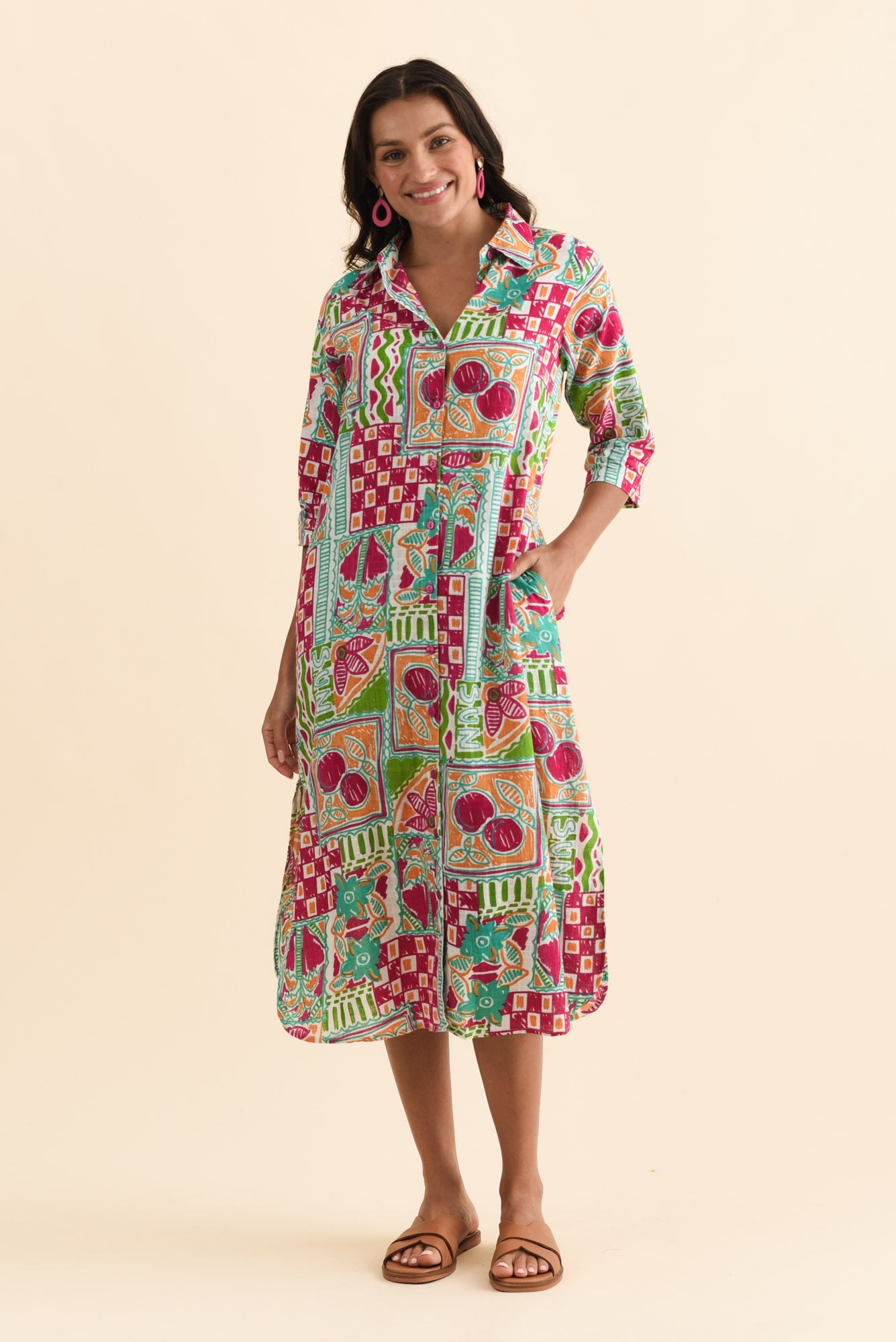 TRICIA GREEN TILE COTTON SHIRT DRESS