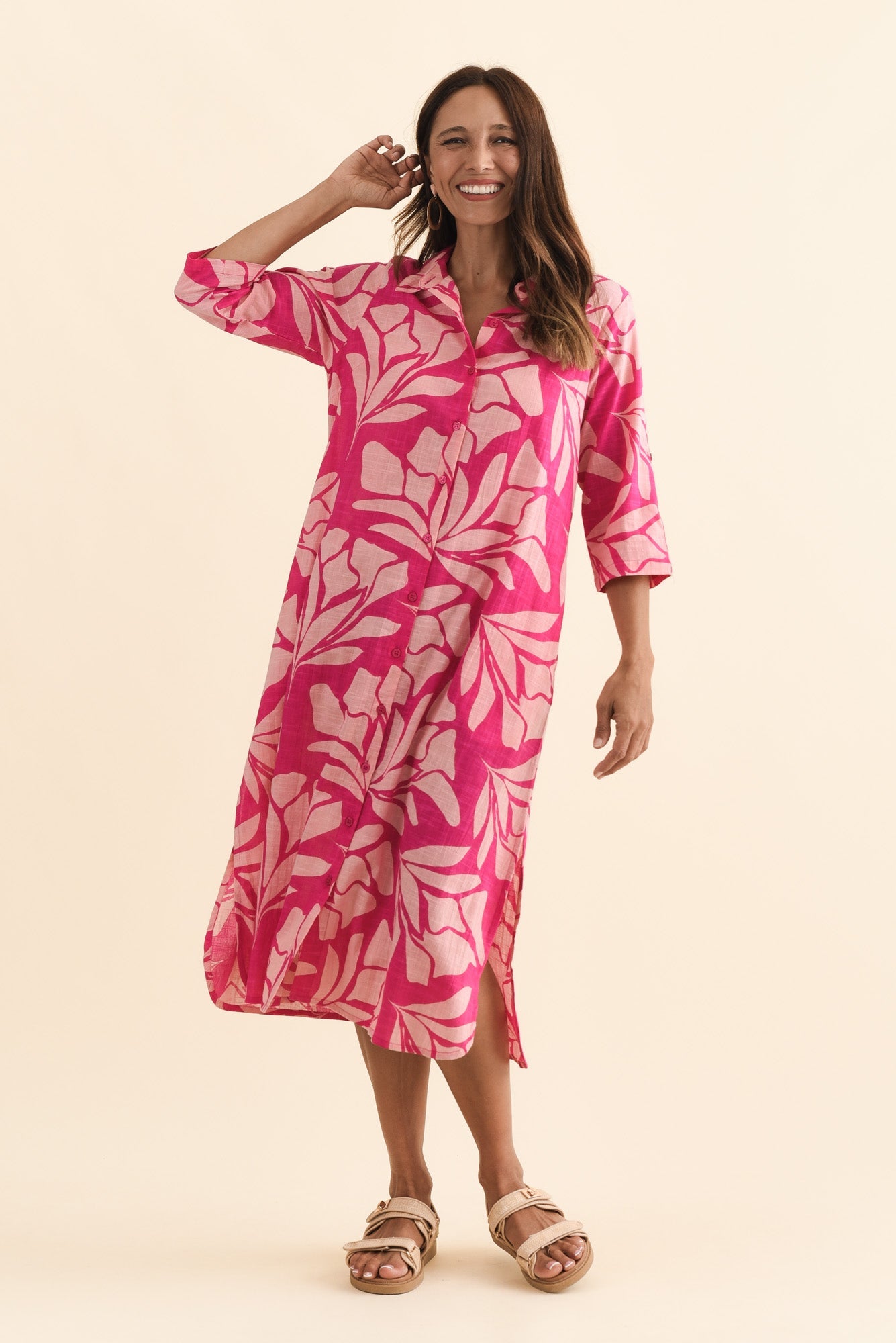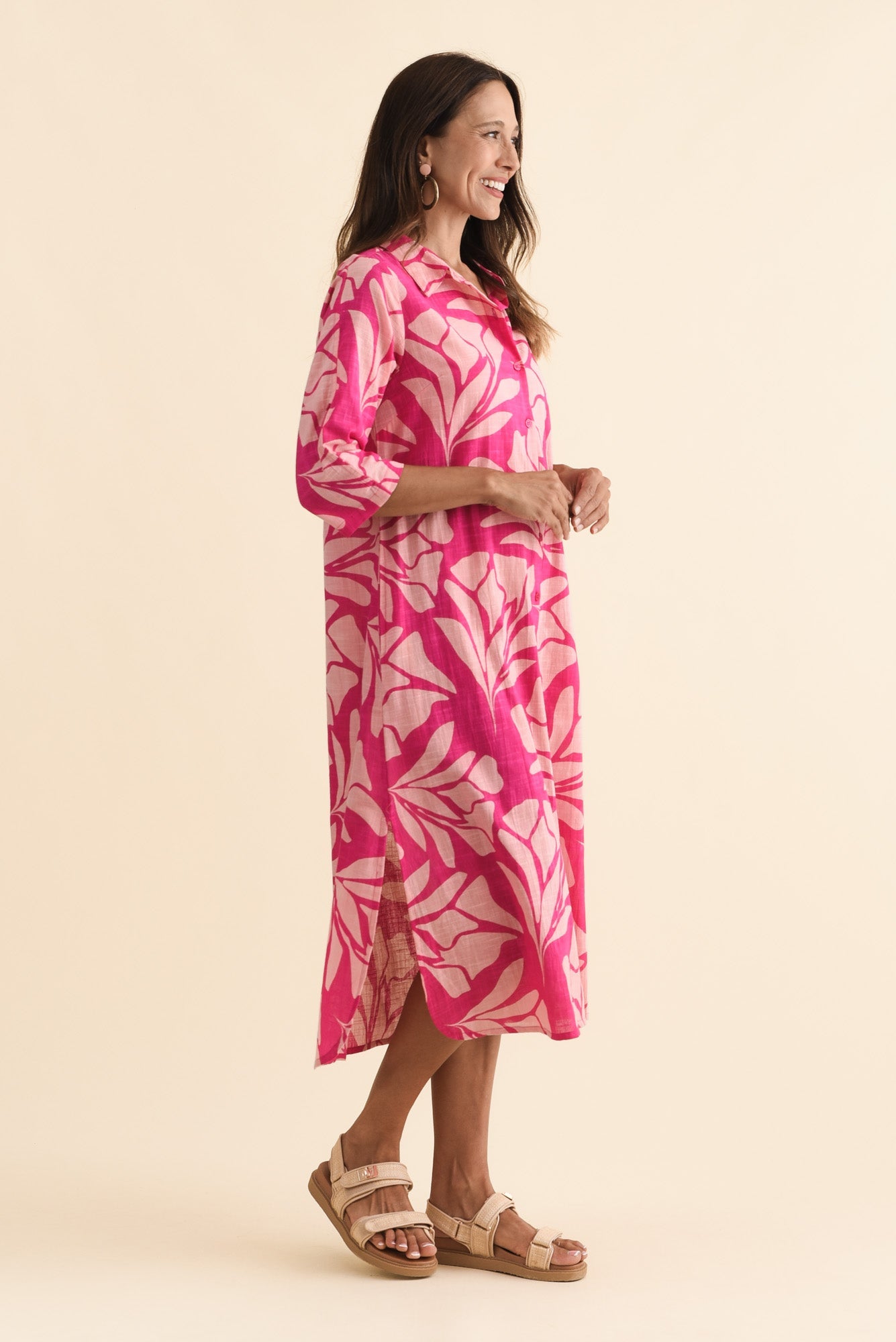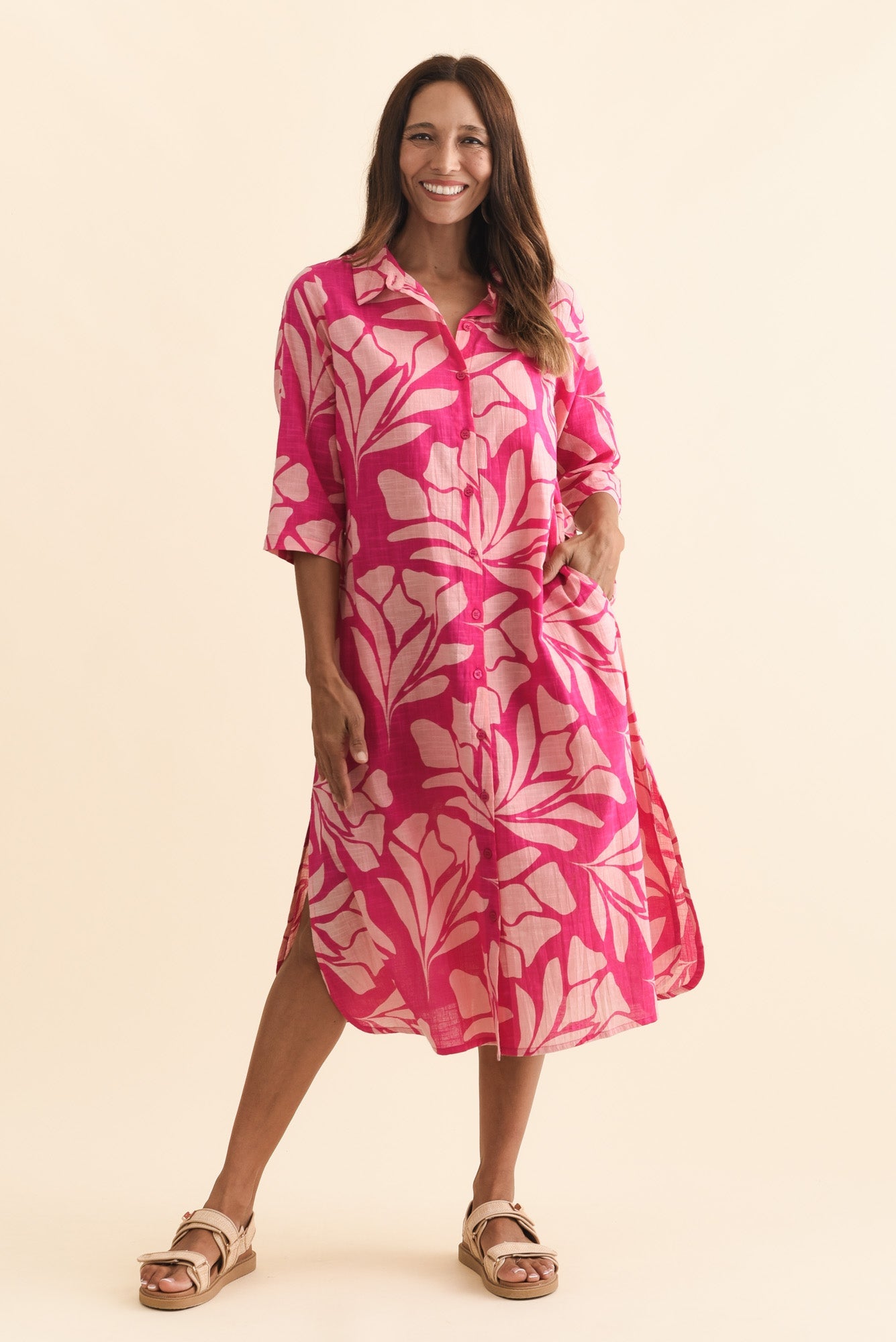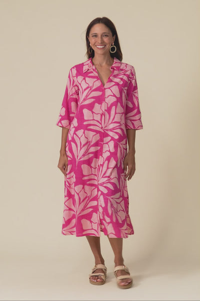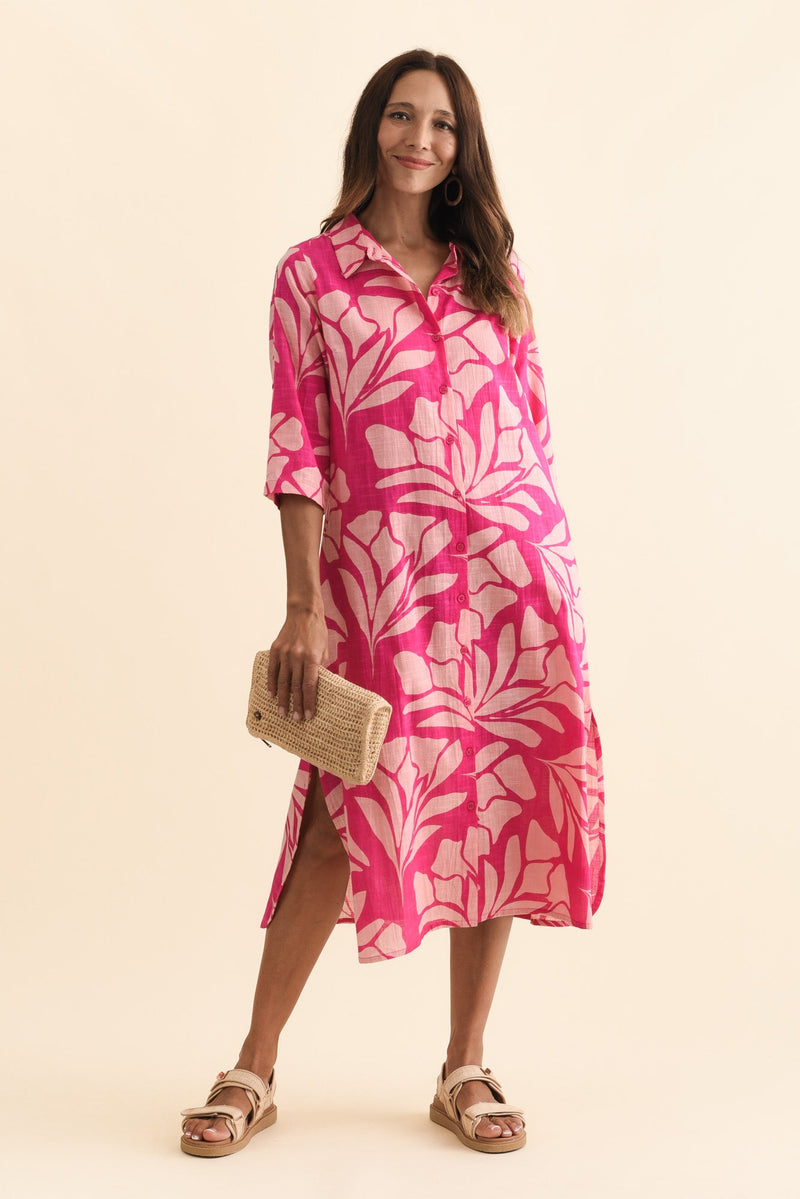 Tricia Pink Floral Cotton Shirt Dress