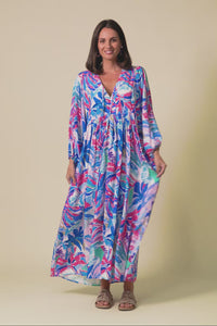 VERONA INDIGO LEAF PUFF SLEEVE DRESS