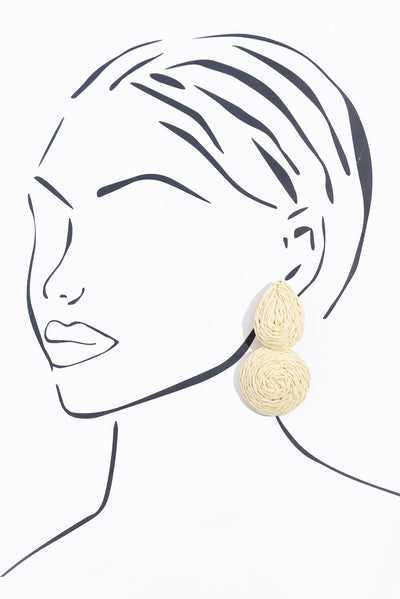 Featuring teardrop and circular shapes wrapped in natural raffia, these earrings are perfect for summer style