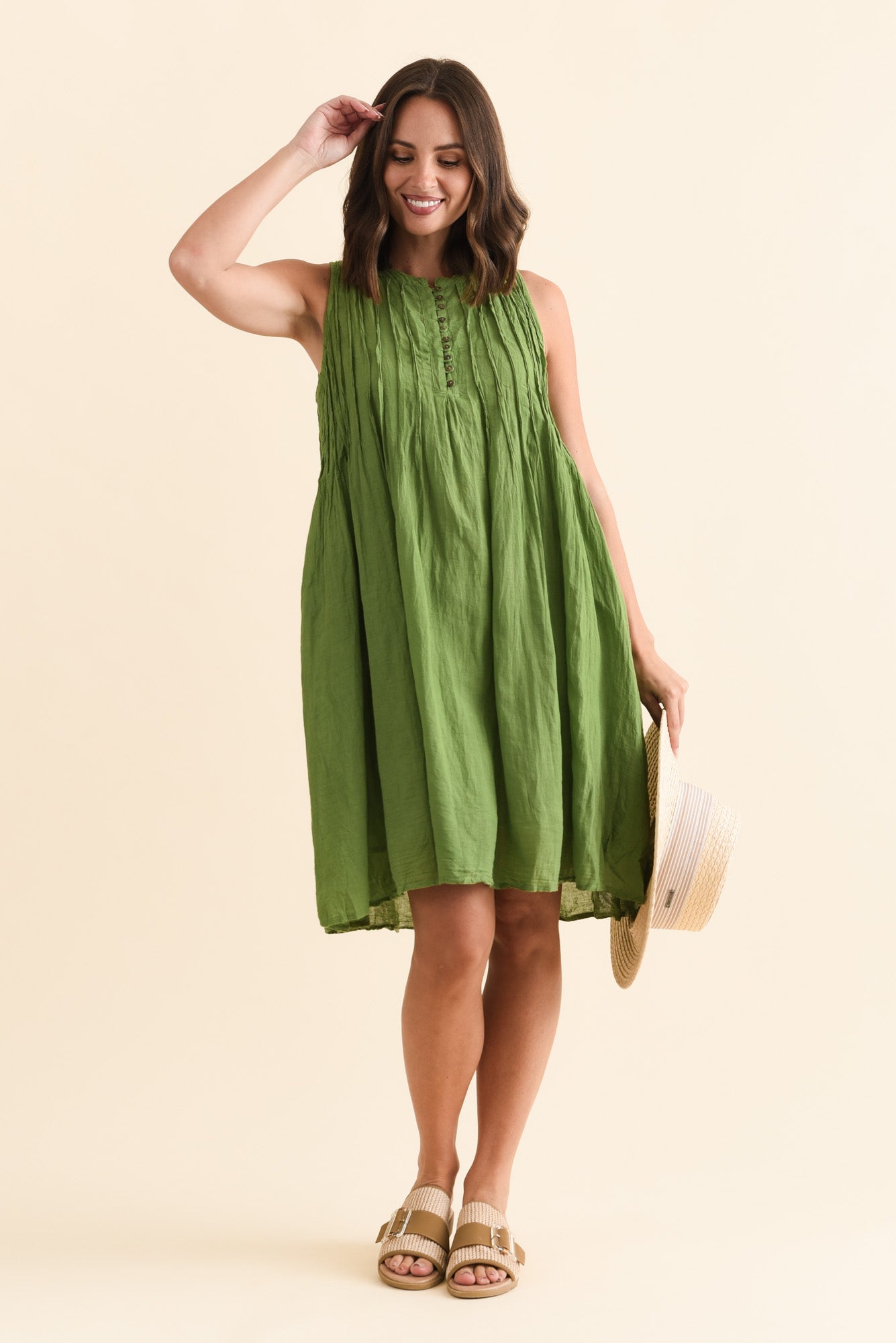 Willow Green Crinkle Cotton Dress