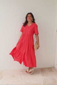 Winona Red Cotton Button Dress