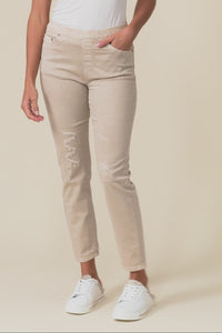Zadie Distressed Beige Stretch Jeans