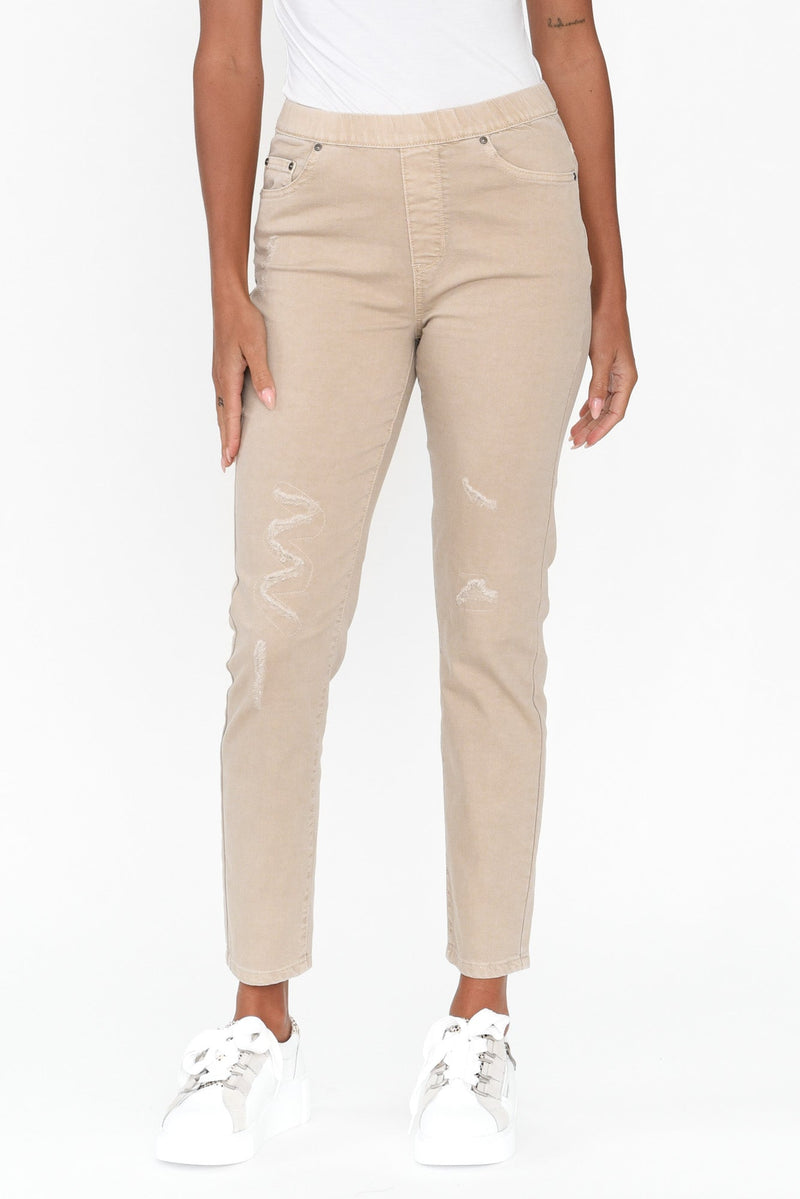 Zadie Distressed Beige Stretch Jeans